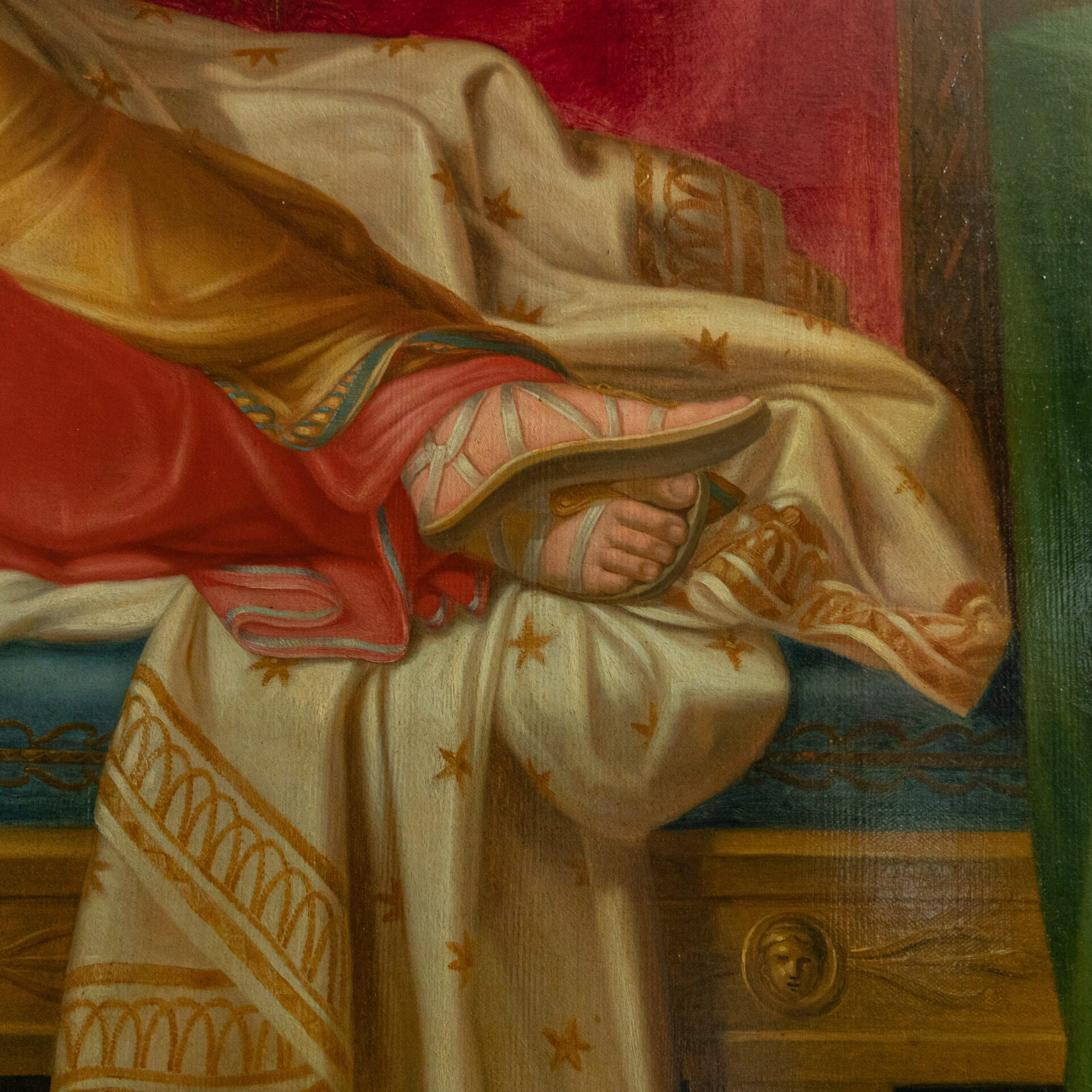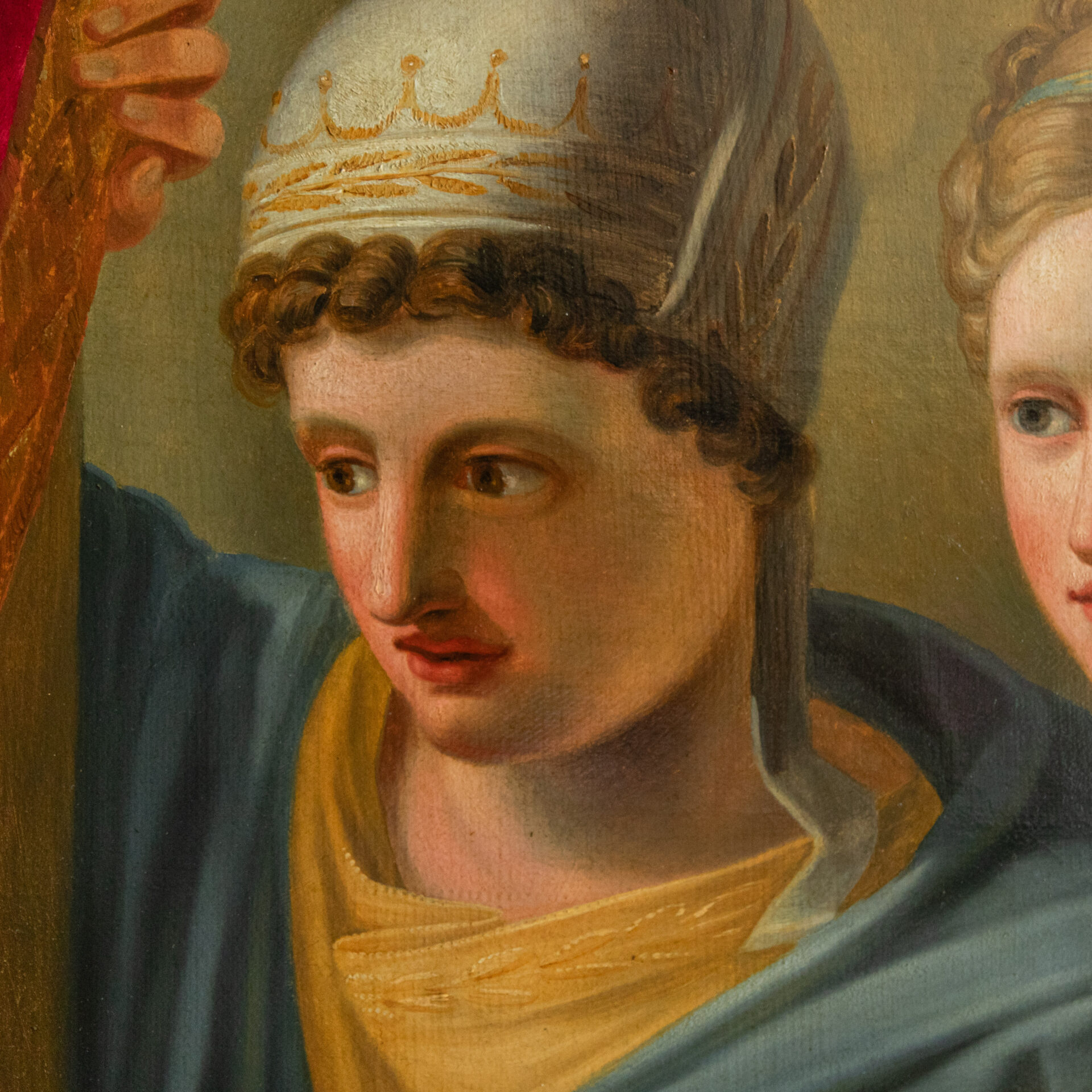 Dit schilderij met Paris en Helena is van de hand van Francois Kinsoen. Het is een uitzonderlijk werk binnen het oeuvre van deze schilder die met name bekend is geworden door de portretten die hij schilderde. Het schilderij is gesigneerd F. Kinsoen. Het komt in techniek en uitvoering sterk overeen met de portretten die hij vervaardigde. Het is uitzonderlijk omdat het hier gaat om een historiestuk. Mogelijk betreft het een portrait historié maar dat is niet te bewijzen en als dat zo is, is het eveneens uitzonderlijk binnen het oeuvre van deze kunstenaar. Frans Jozef Kinsoen was de oudste zoon van een smid genaamd Frans Kinsoen in Brugge. Hij ging in de leer aan de Brugse Kunstacademie bij kunstschilder Bernard Fricx (1754-1814) en bij de ornamentist L.F. De Grave. In 1790 werd hij de eerste van zijn klas bij het tekenenn naar het model. Om zijn leertijd te vervolmaken verhuisde hij eerst naar gent en later naar Brussel. In 1794, toen de onrust van de Franse revolutie net wat minder werd, trok Kinsoen naar Parijs. Hij vestigde zich hier en trouwde op 31 oktober 1801 met Augustine Le Prince. Het huwelijk bleef kinderloos. Schijnbaar moeiteloos integreerde Kinsoen in Parijs waar hij na zijn huwelijk diverse portretten van hooggeplaatsten maakte. Het contact met Brugge en België bleef, niet alleen in Parijs waar hij regelmatig met landgenoten samenkwam, maar ook door bezoekjes aan zijn vaderland alwaar hij eveneens portretten vervaardigde. Hij schilderde diverse portretten van Napoleon en zijn entourage. In 1808 werd hij benoemd tot hofschilder in Kassel bij een van de broers van Napoleon, Jerome Bonaparte, de koning van Westfalen. Dit betekende een zeer succesvolle periode voor Kinsoen waarin hij vele portretten vervaardigde. Toen het regime Bonaparte in 1813 eindigde vond Kinsoen een nieuwe beschermheer in de zoon van Charles Phillipe van Frankrijk, de hertog van Angoulème. Hij maakte diverse vorstenportretten, ook in zijn vaderland van de koning der Nederlanden. Na 1830, toen revoluties een einde maakten aan de heerschappij van Charles X en aan die van de Oranjes in België bleef Kinsoen in Parijs schilder voor met name dames uit de aristocratie. Kinsoen overleed in zijn geboorteplaats tijdens een bezoek aan zijn familie. Hoewel hij het grootste deel van zijn leven in Parijs woonde en werkte wordt hij nu herinnert als Brugse schilder. Het werk van Kinsoen werd sterk beïnvloed door dat van Jacques Louis David (1748-1825). Mogelijk heeft hij zelfs lessen gevolgd bij deze schilder. Het atelier van Davis was in die jaren vrij toegankelijk en daardoor heeft David zeker 400 leerlingen gehad van wie de meesten niet bij naam bekend zijn, omdat dit niet werd geregistreerd. In de oeuvrecatalogus die recent verscheen is een apart hoofdstuk gewijd aan het tot dan toe enig bekende historiestuk van zijn hand, Belisarius nu in het museum te Brugge. Dit schilderij presenteerde hij op de salon van 1817 in Parijs. Het werd wat smalend onthaald. Omdat Kinsoen bij de recensenten alleen als portretschilder bekend was, werd verbaasd gereageerd op deze onverwachte wending. Kinsoen zou het schilderij nooit verkopen en in 1836 schenken aan de academie van Brugge, waar hij zijn eerste kunstlessen had gekregen. De academie ontving het onder dankzegging. In zijn schenkingsbrief maakt Kinsoen gewag van een opdracht voor een historiestuk voor de stad Beauvais dat hij uiteindelijk nooit vervaardigde. De auteur van het boek Kinsoen concludeert daarmee dat de Belisarius Kinsoens enige historiestuk was. Het schilderij Paris en Helena was niet bij hem bekend. Mogelijk is de Paris en Helena in de 19de eeuw in het bezit geweest van de Brugse schilder en beeldhouwer Pierre Rousseau. Op maandag 12 april 1858 werd namelijk in de veiling van zijn nalatenschap onder nummer 144 het volgende schilderij geveild: Kinsoen (Signé) Sujet Mythologique.