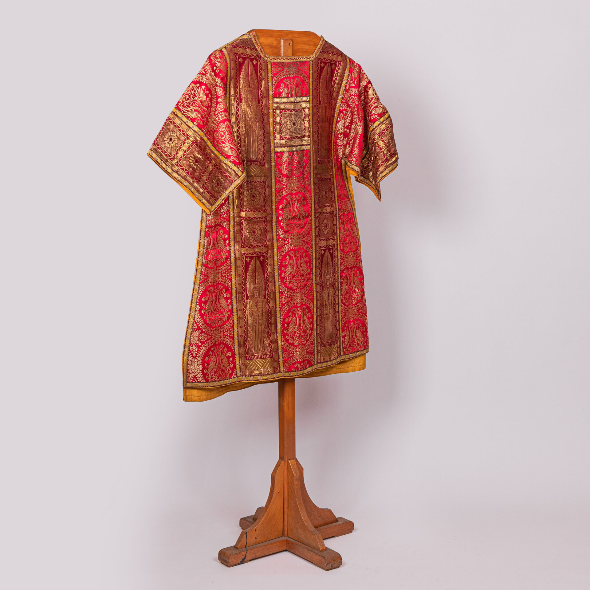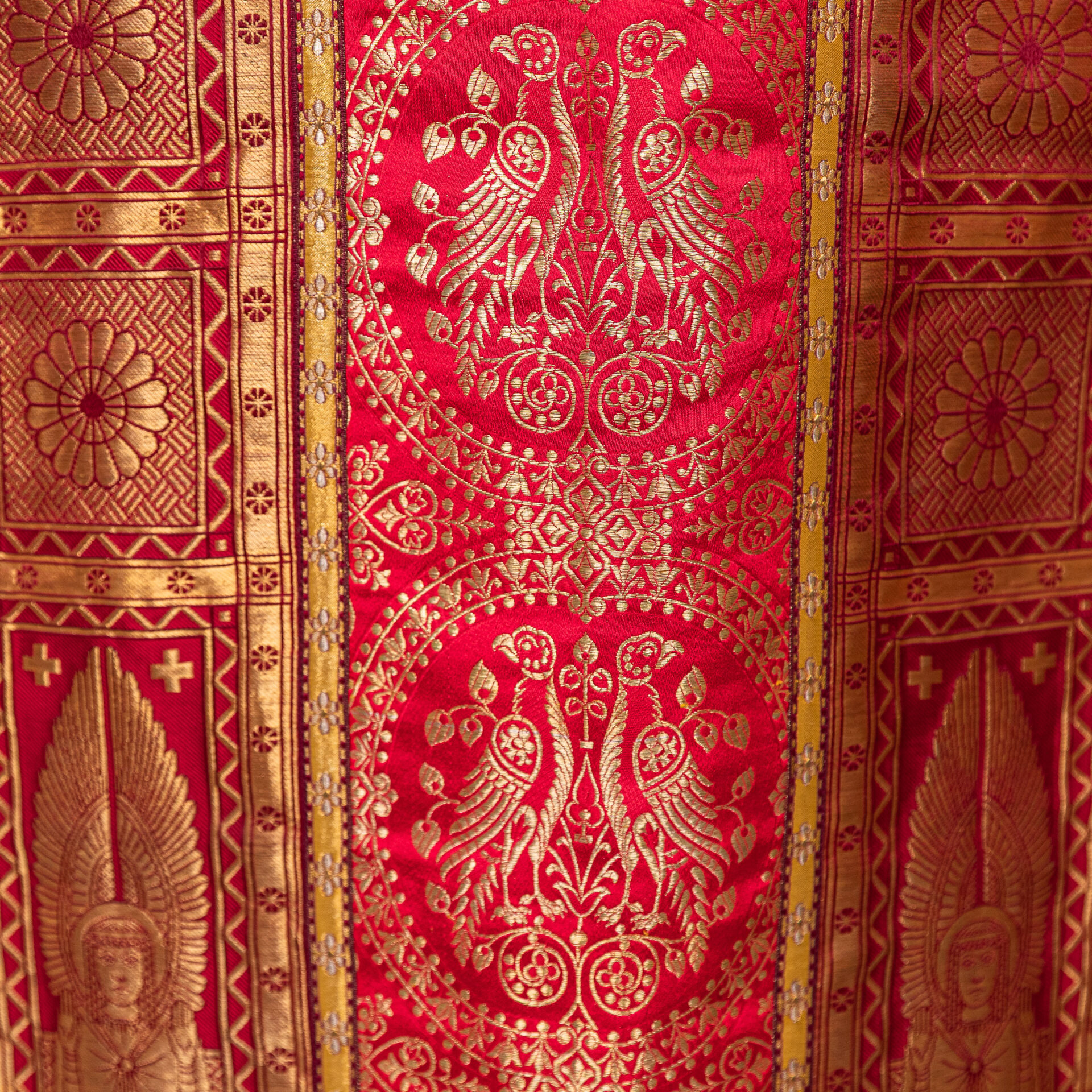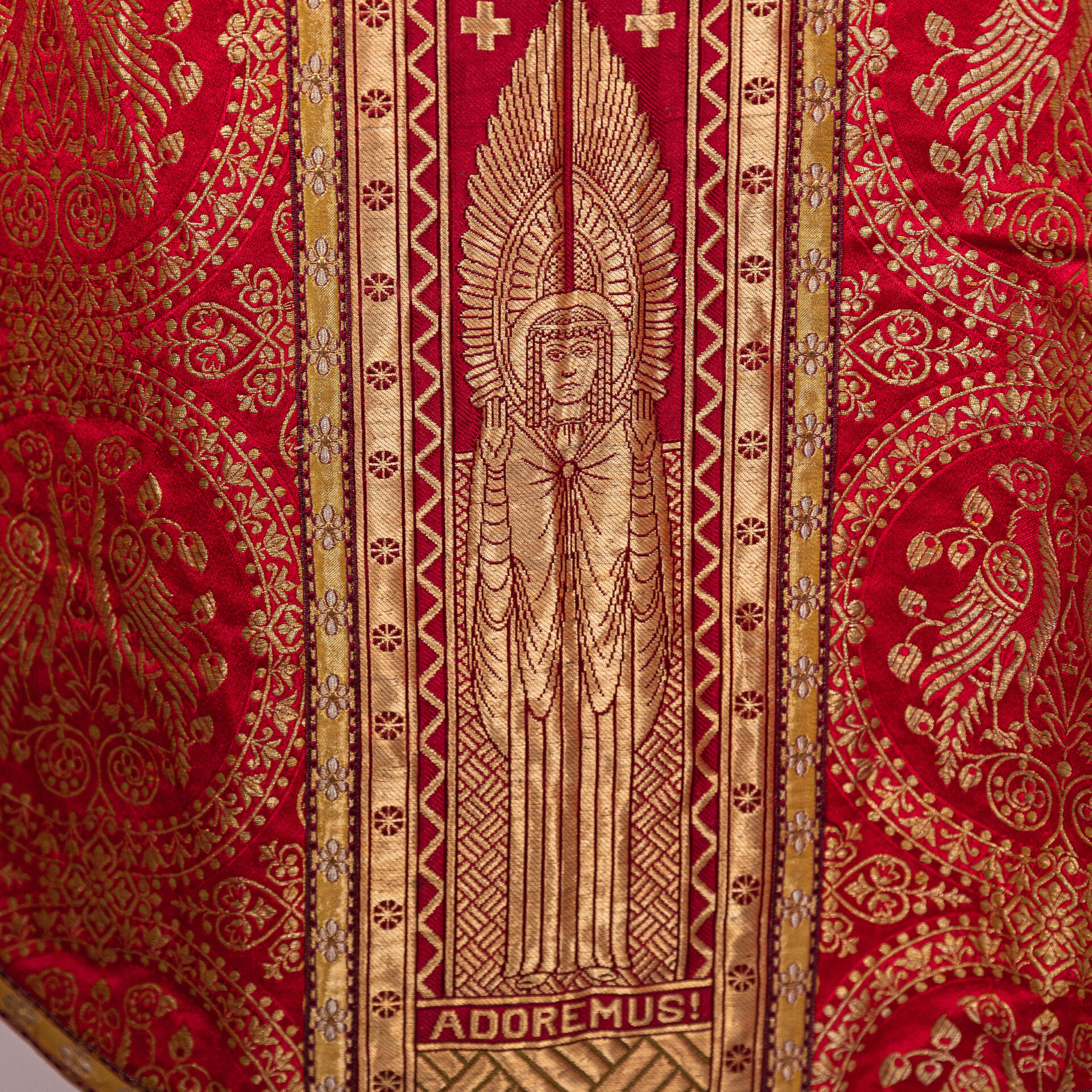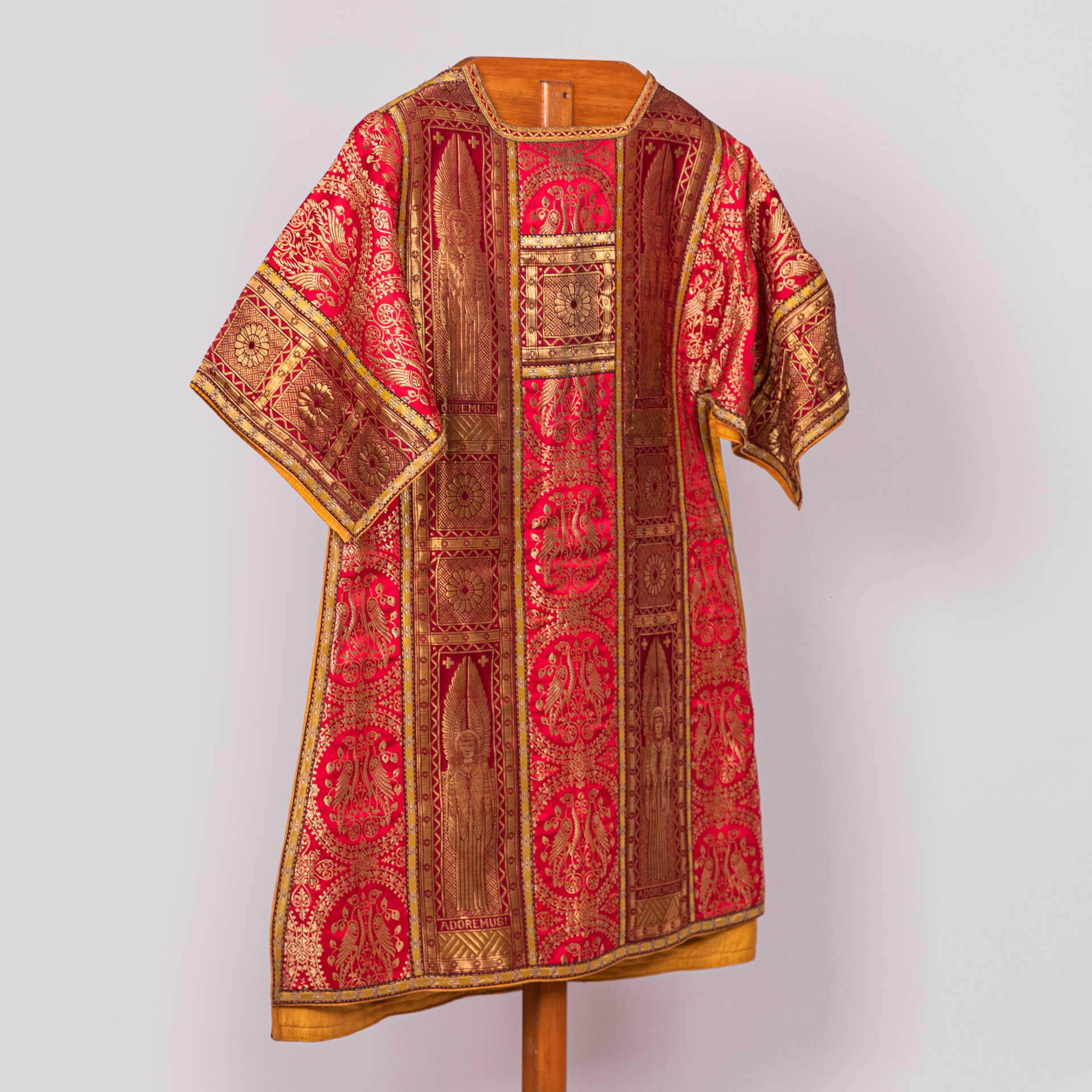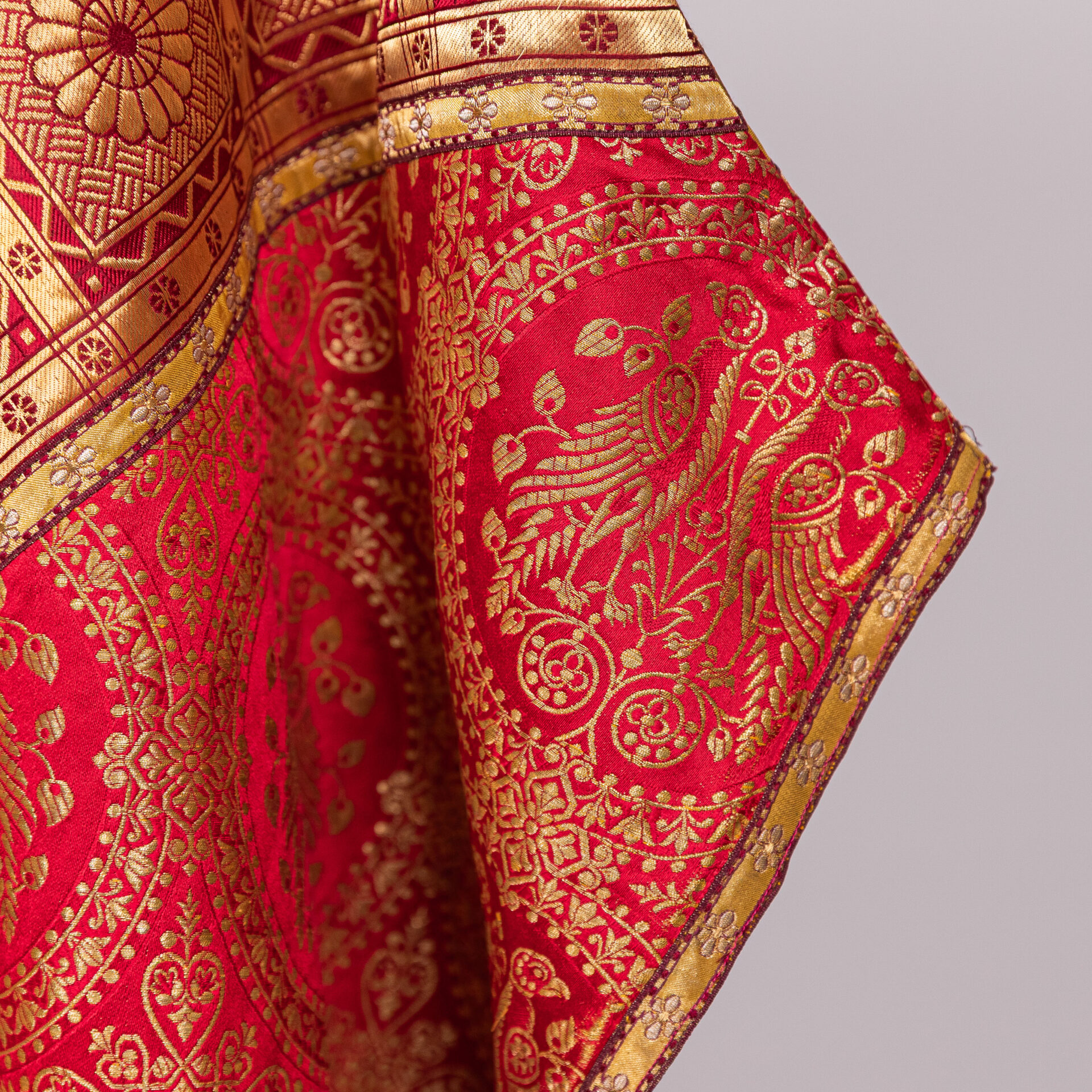 Kazuifel met 2 dalmatieken, 3 stolas, 3 manipels en bursa en velum