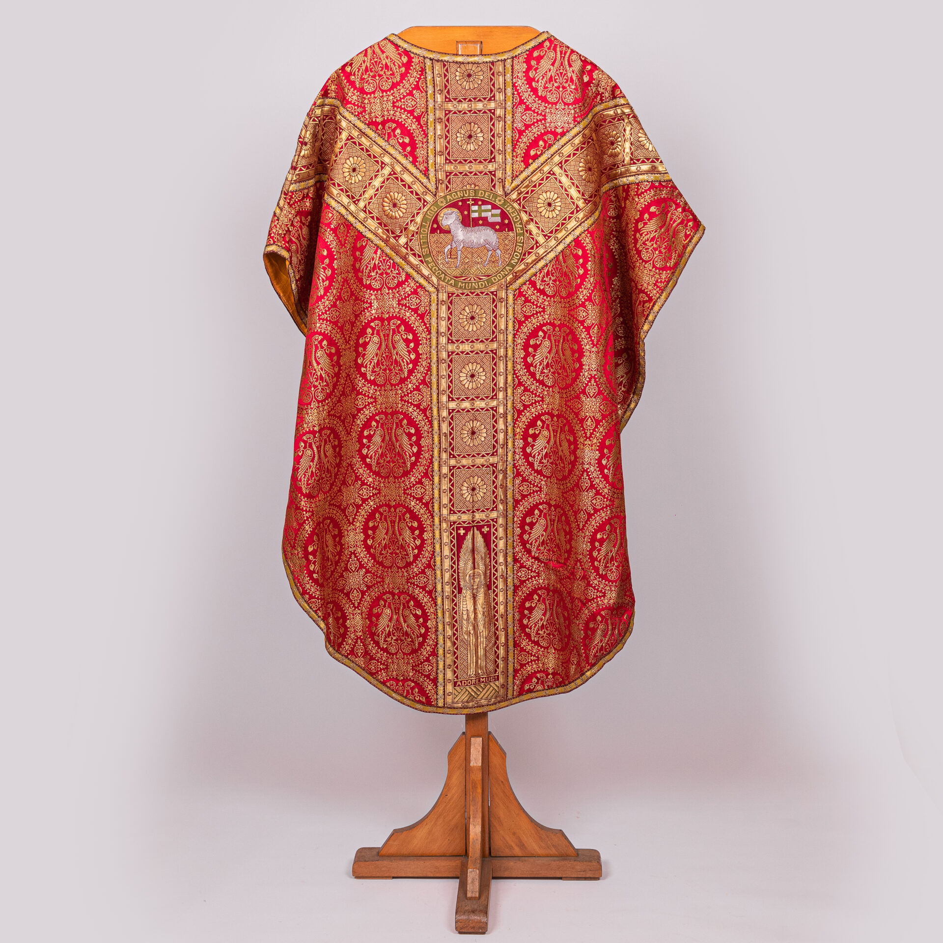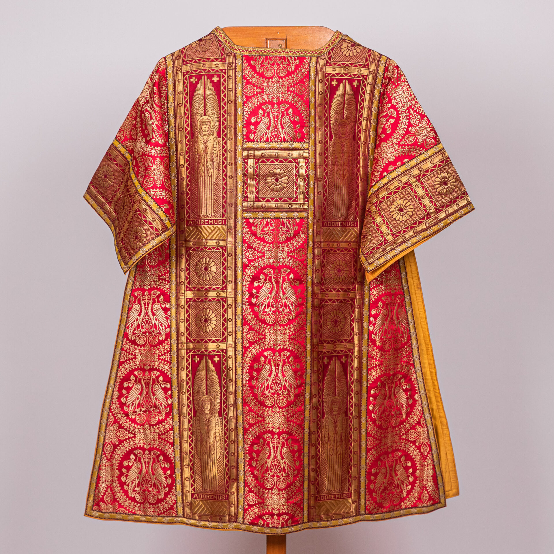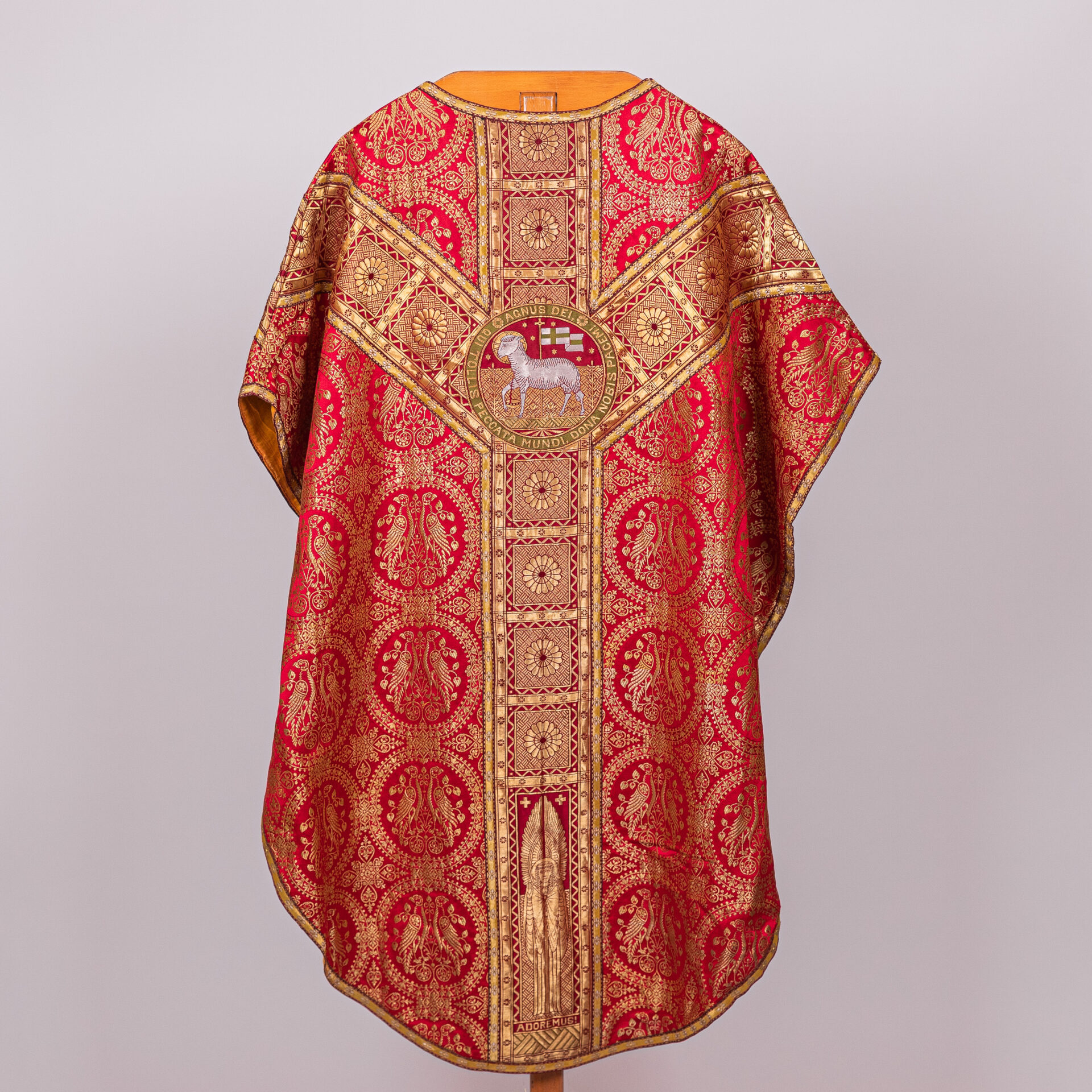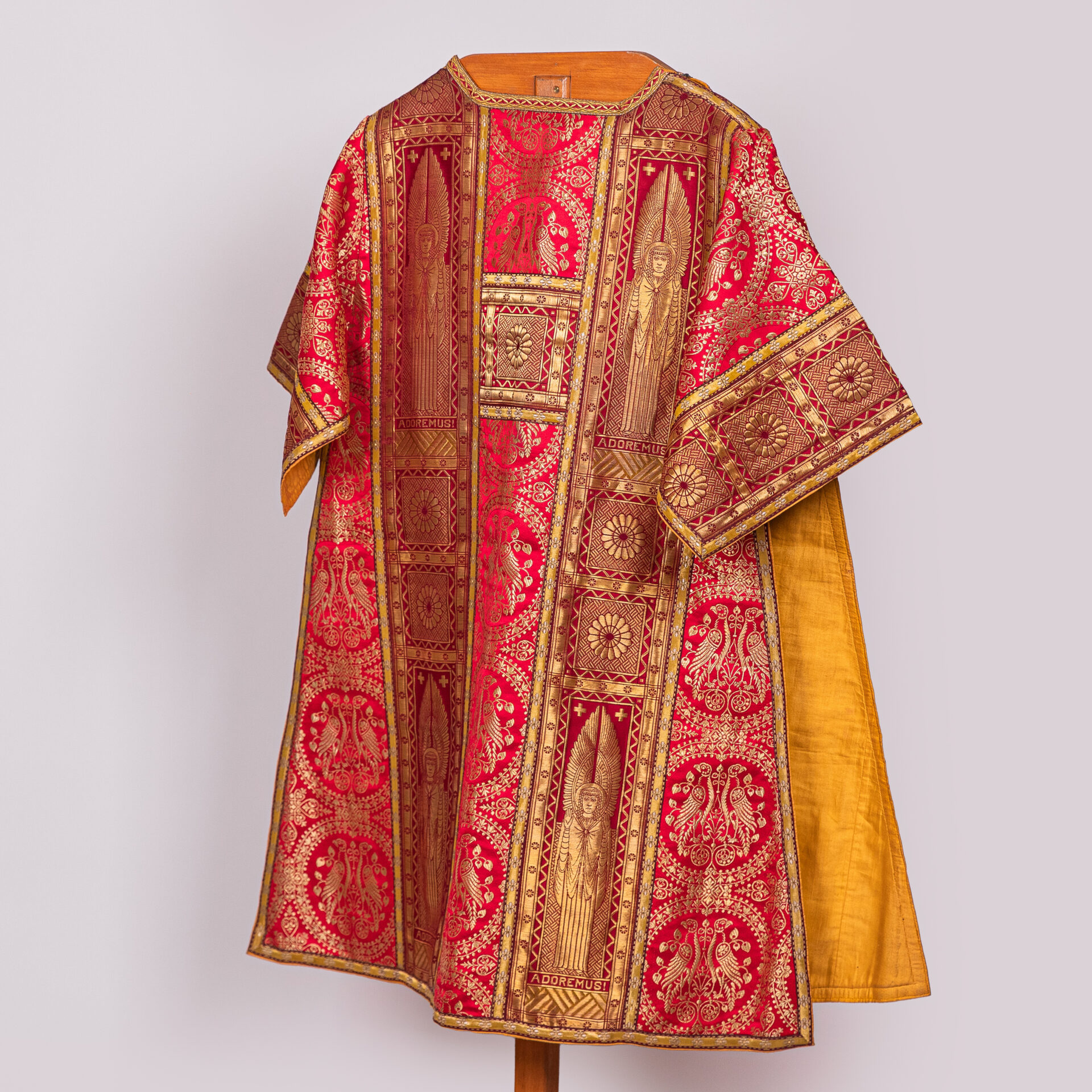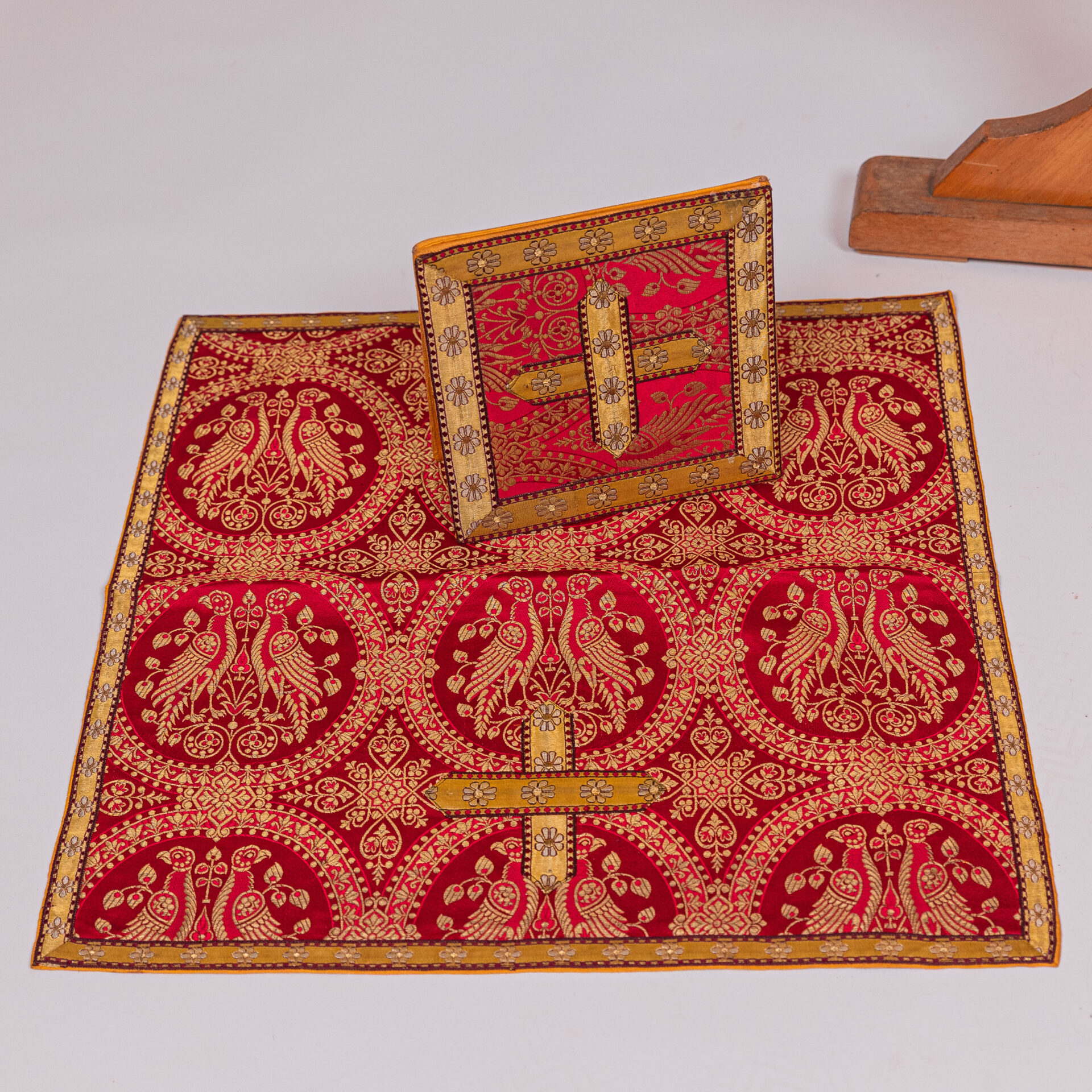 Kazuifel met 2 dalmatieken, 3 stolas, 3 manipels en bursa en velum