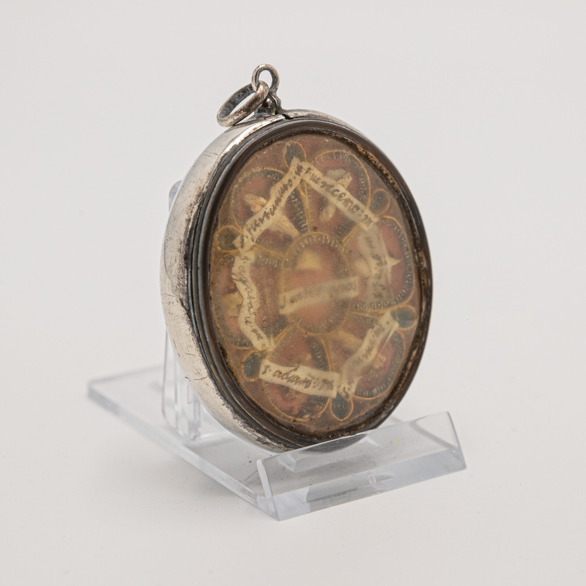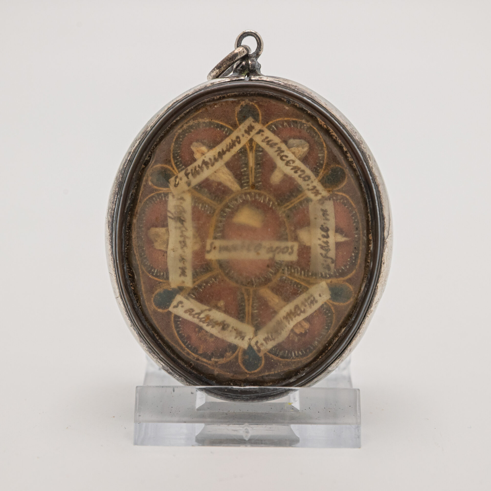 Multi reliek met heiligen waaronder: Agatae virg.Mart., Fortunatus, Vincentius Mart, Felix Mart, Agnes, Ursula, Prosperius, Sebastianus, Catharina Virg Mart, Andreas Apostel, Victoria