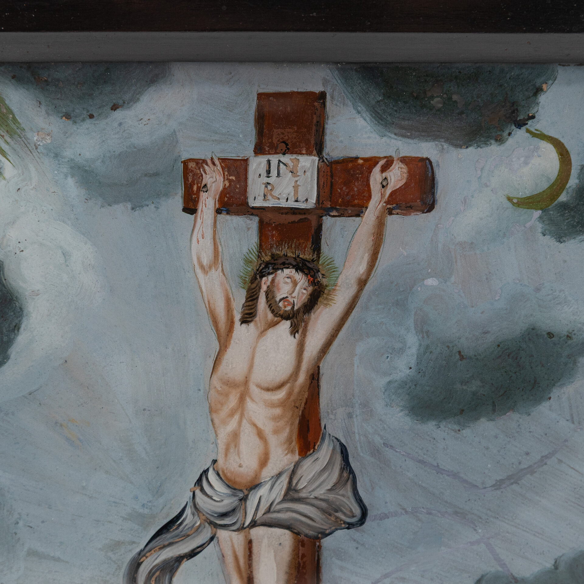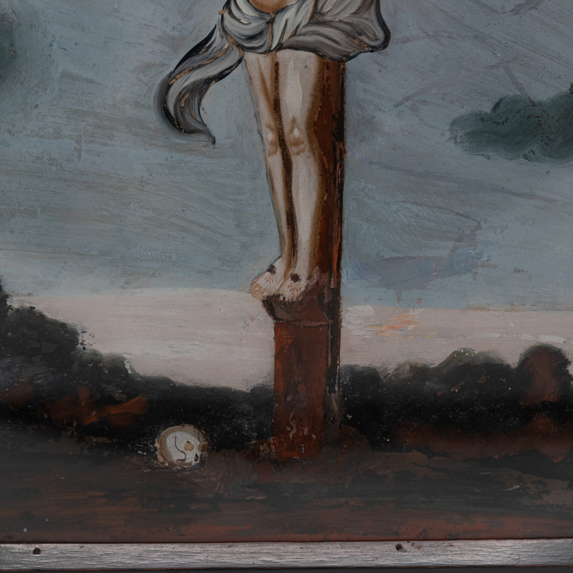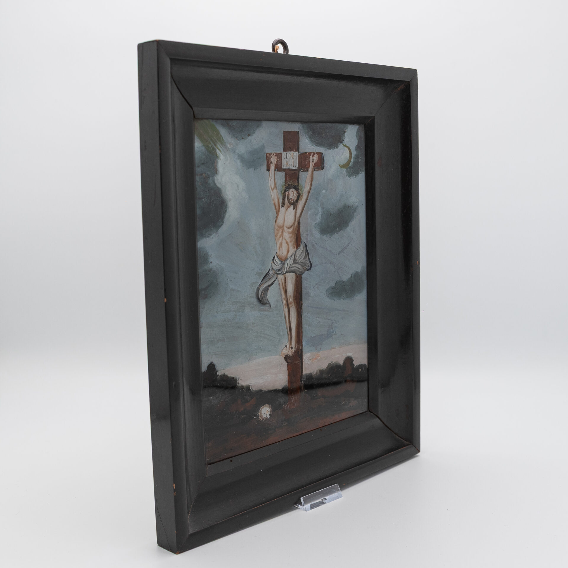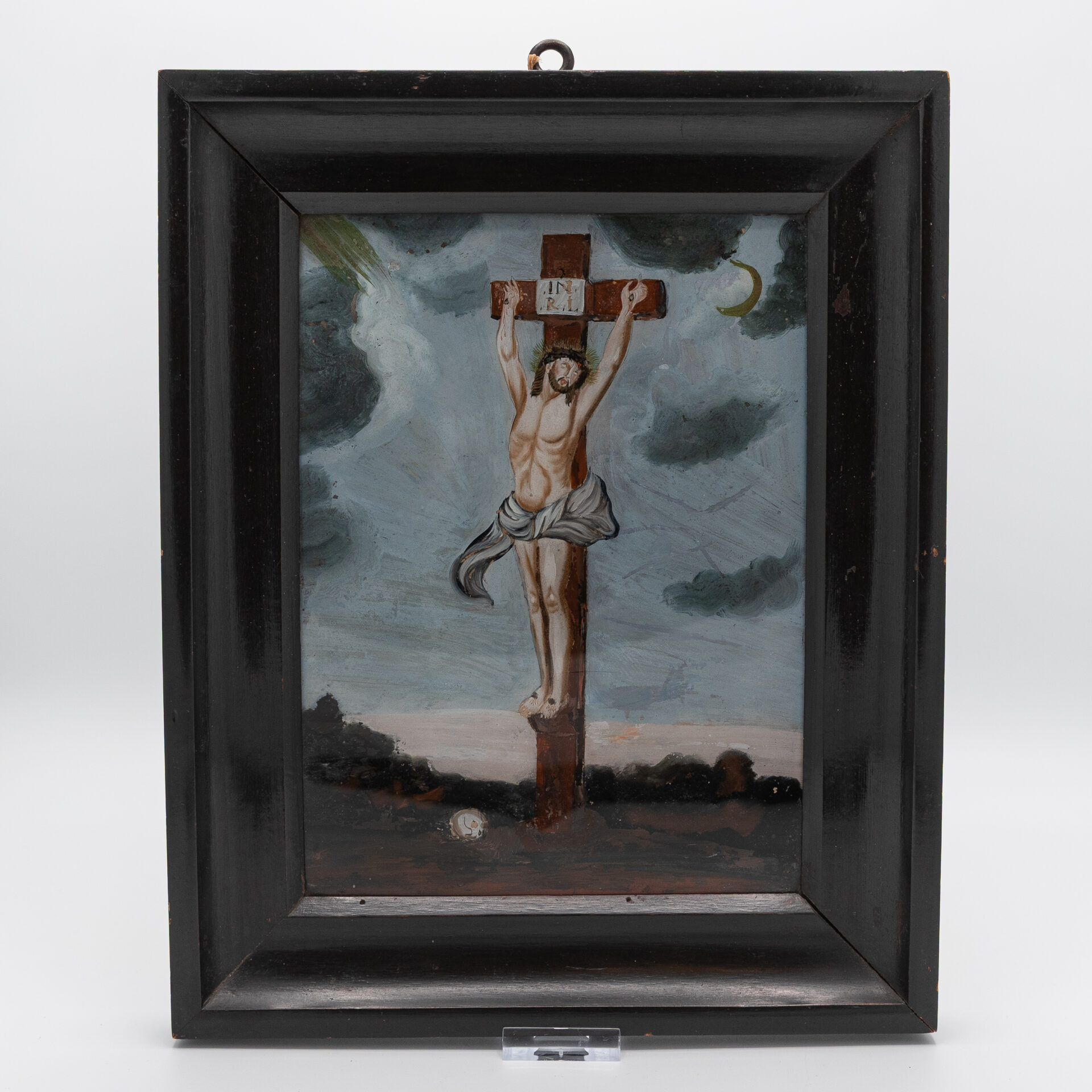 schilderij achter glas, Christus aan het kruis