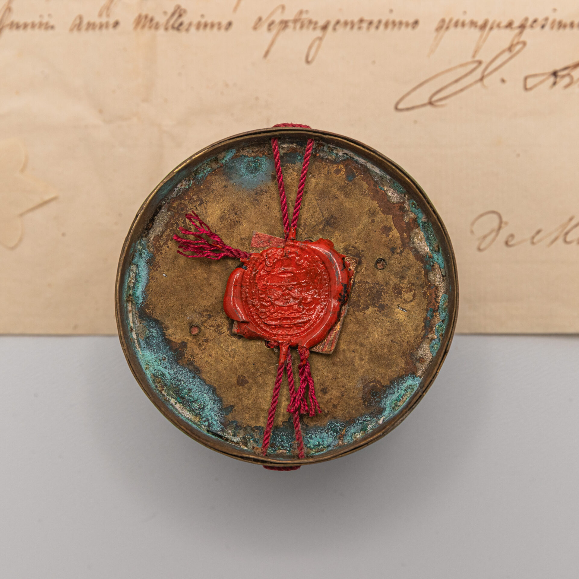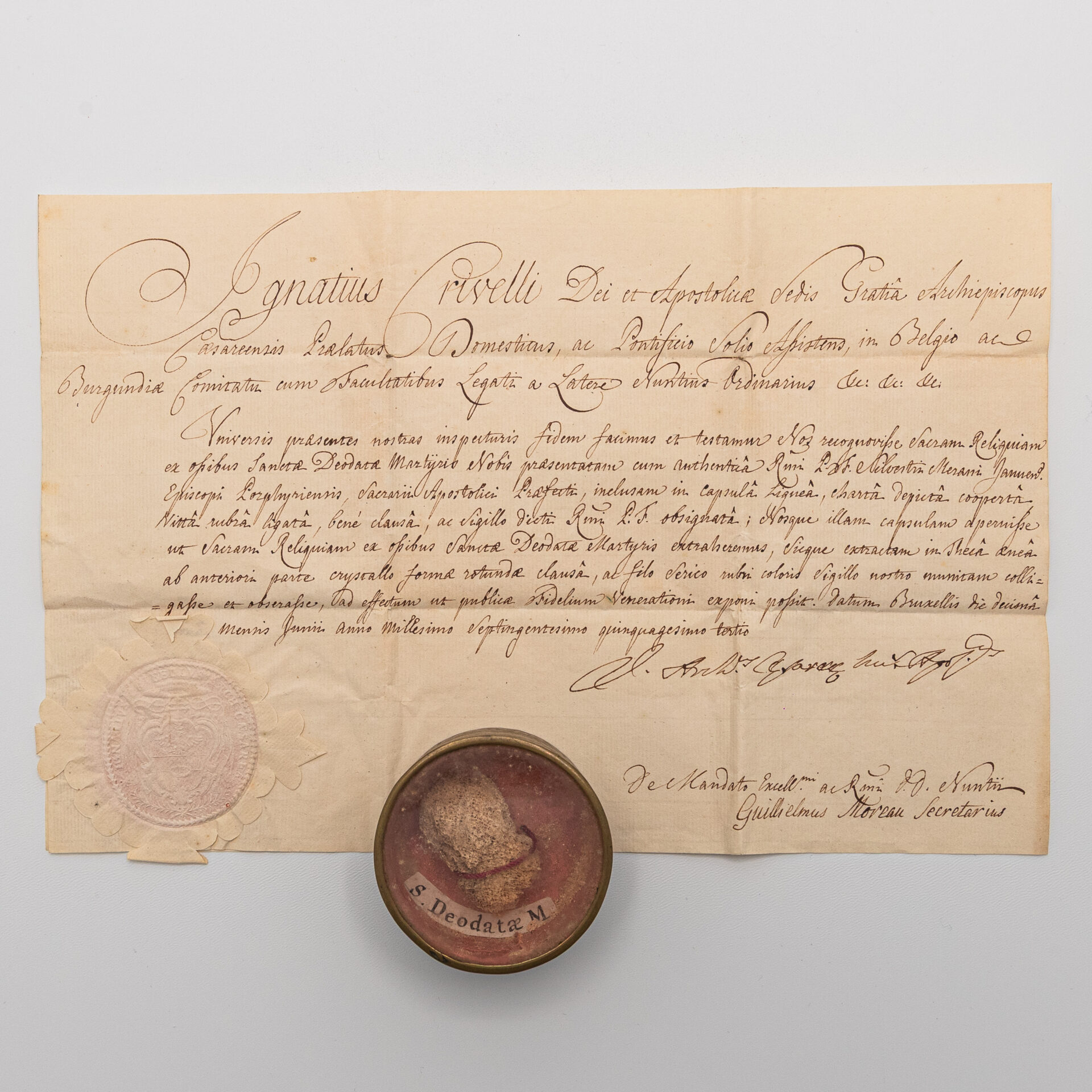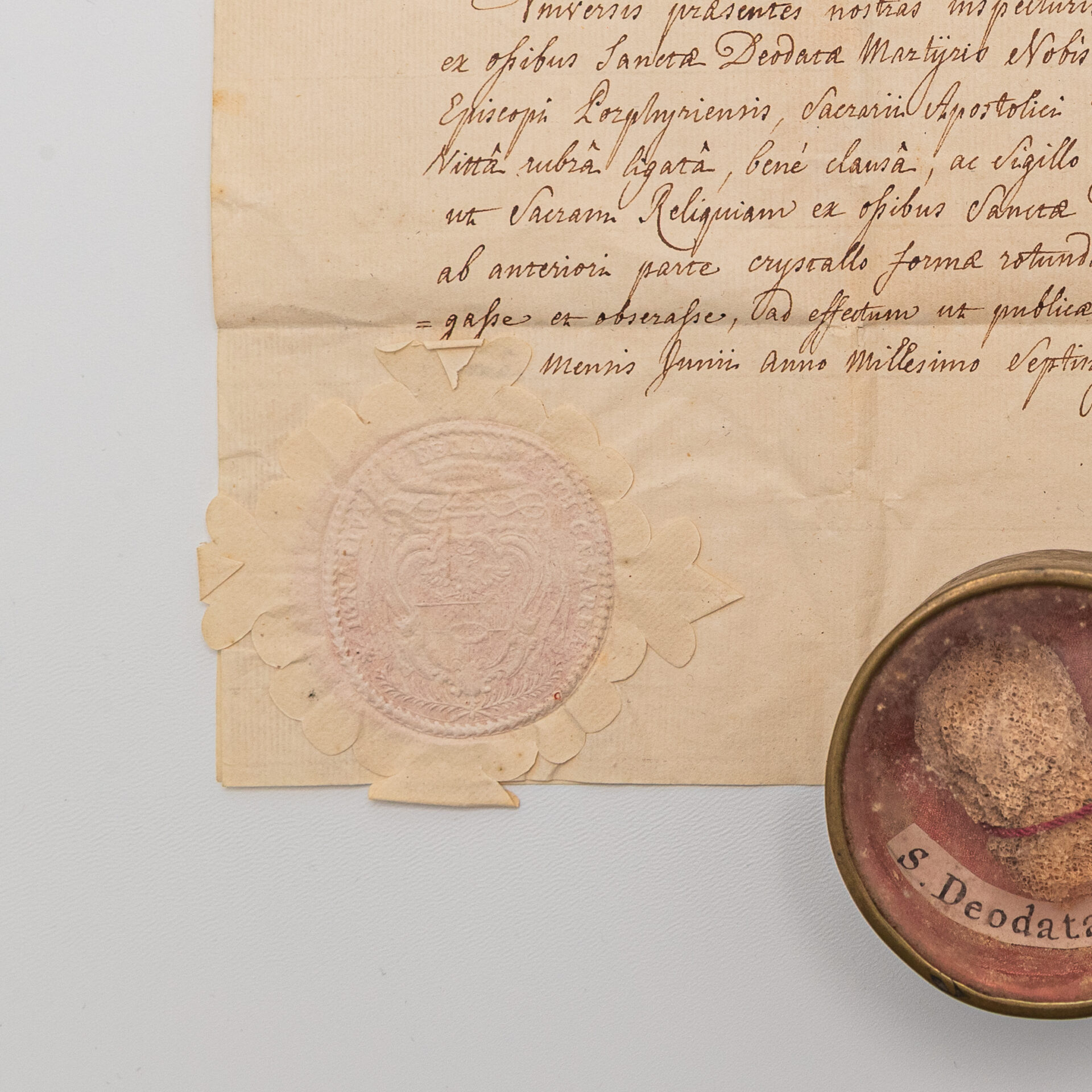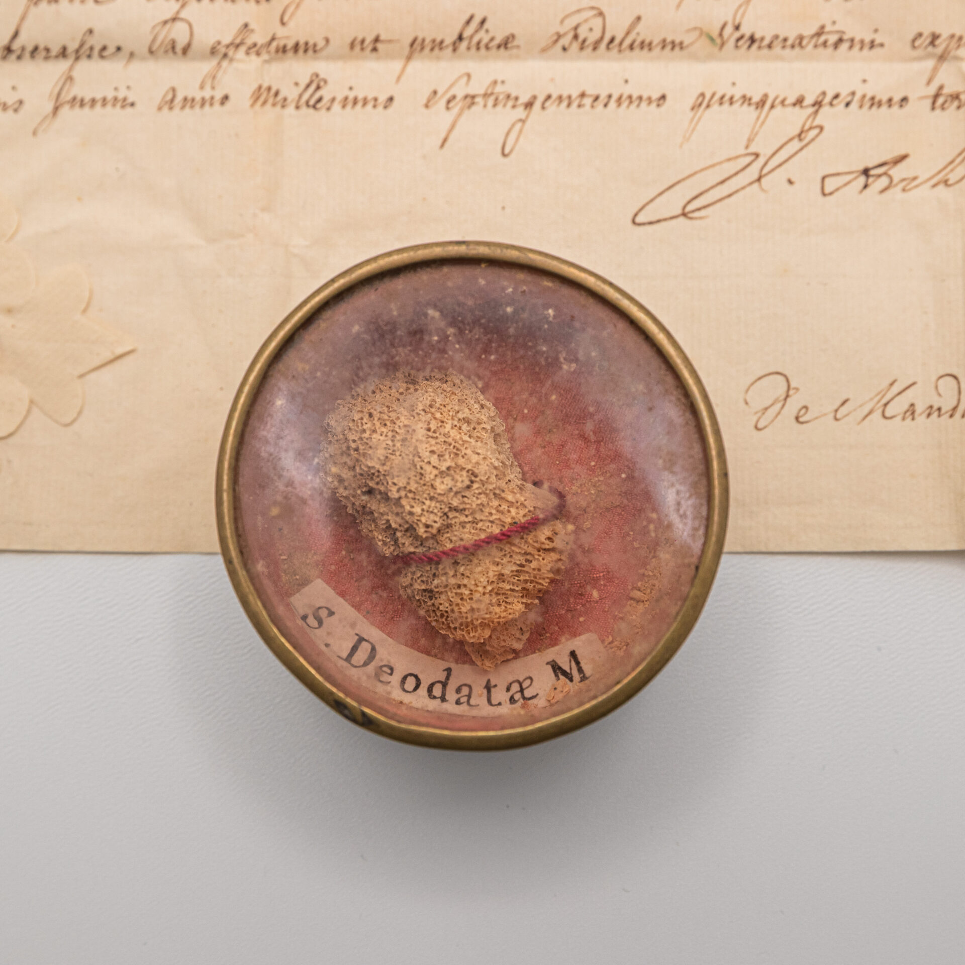 Relikwie met document heilige Deodatae (Deodatus) Martelaar