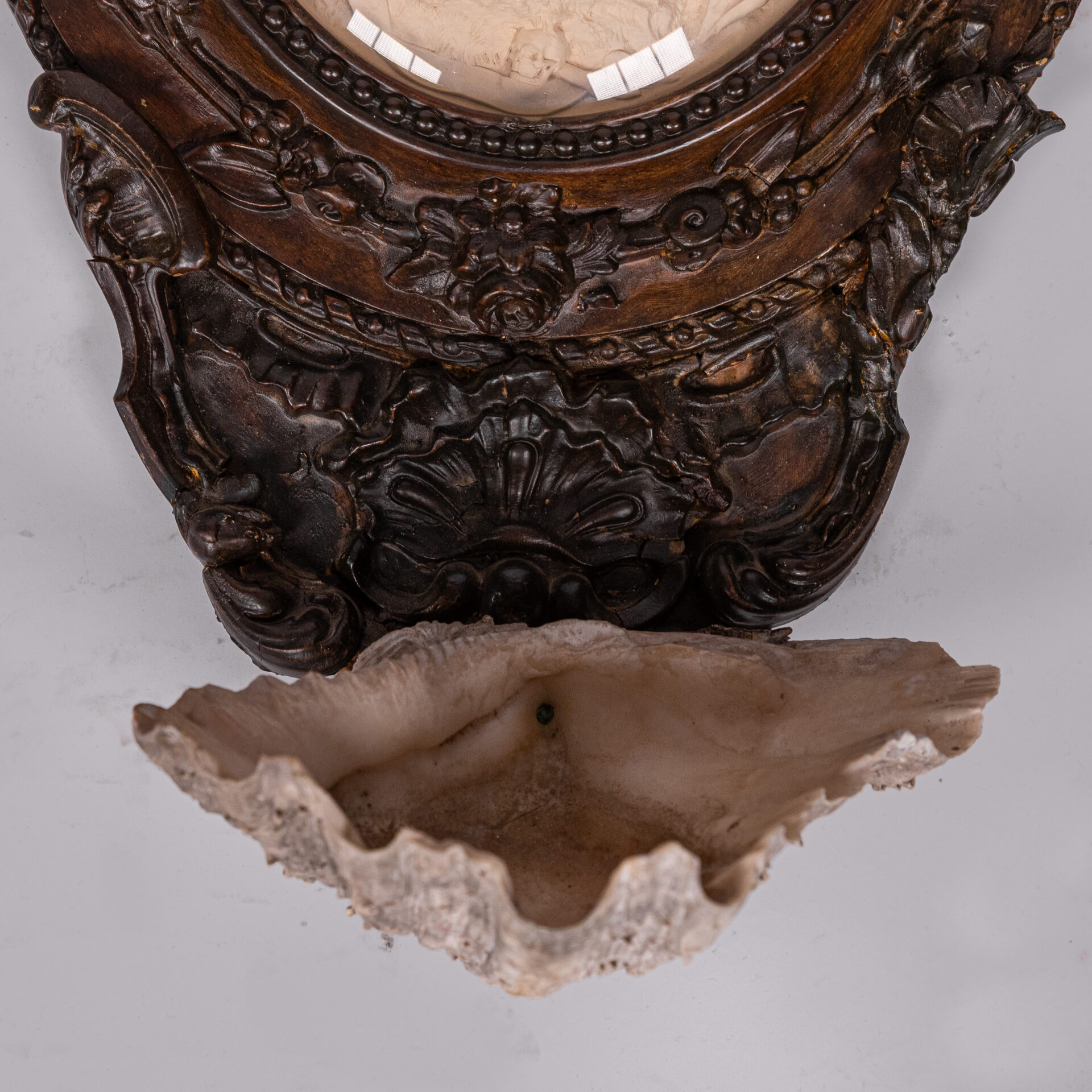 Rijk versierd met bloemen en schelp als wijwaterbakje